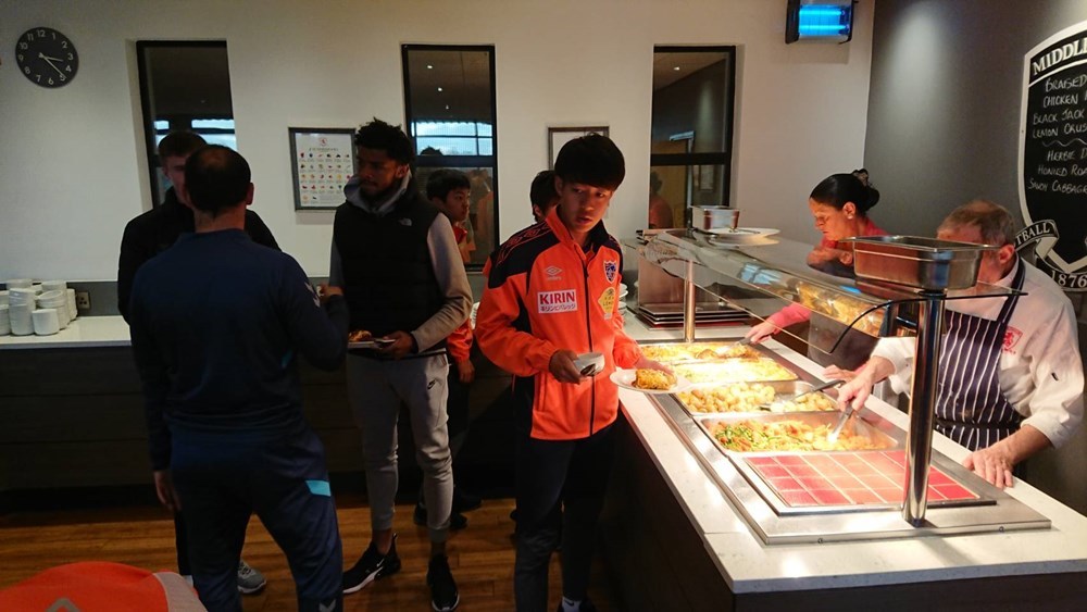 今天体操后吃了早餐,乘坐巴士花了两个半小时前往米德尔斯堡足球俱乐部的训练场。