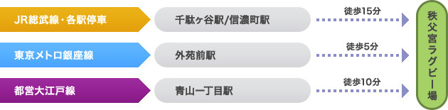 ※由于联赛杯小组赛将在味之素体育馆以外的场地举行,入场门和交通方式将根据场馆不同而有所变化。