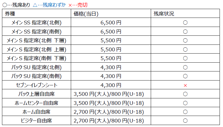 4/6(周六)清水战 当日票销售及上层座席说明