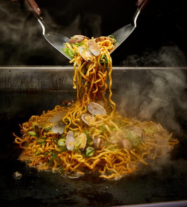 浓郁的黄油香味与江户前酱油的香气融合,焦黄的黄油酱油中加入了江户食材的经典——鲜美的蛤蜊和爽脆的葱,制成“大江户炒面”。