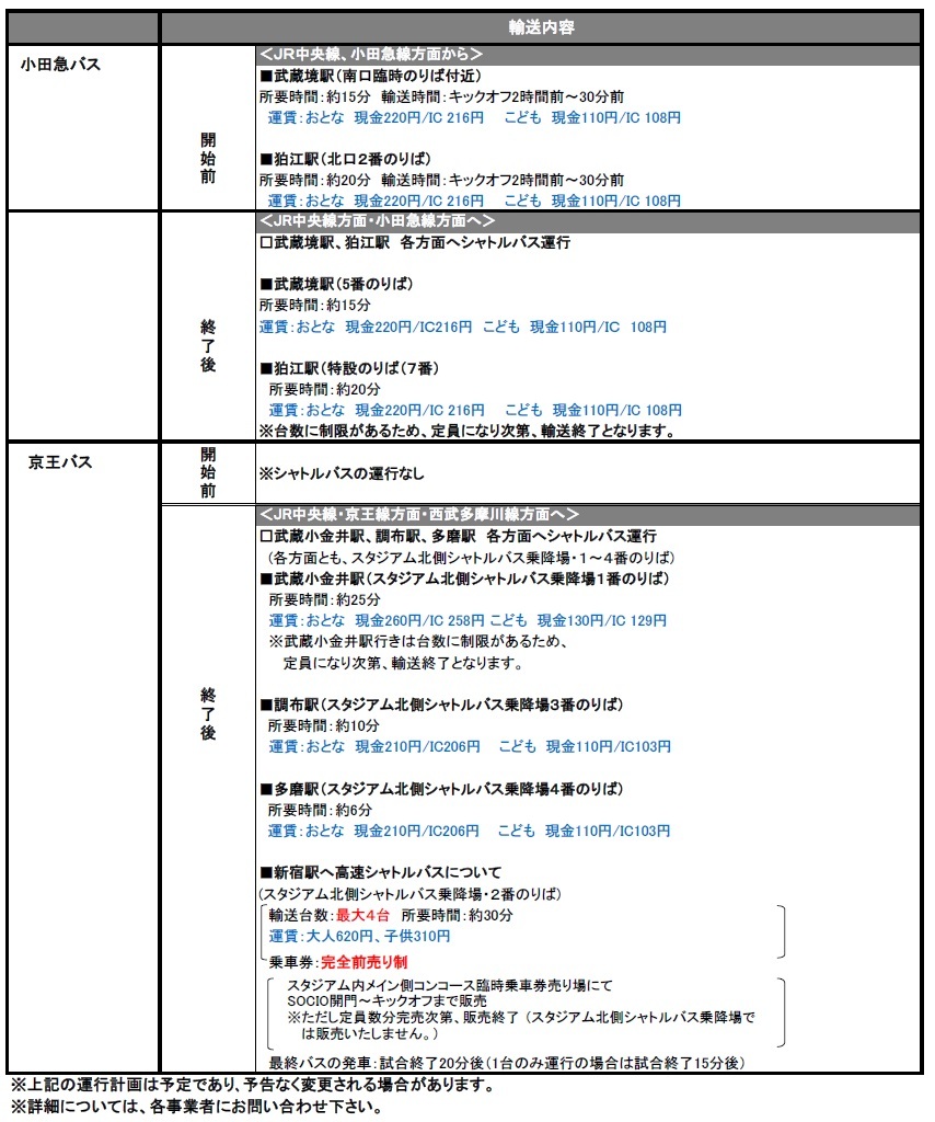 5/18(周六)2019明治安田生命J1联赛第12轮vs北海道Consadole札幌(14:00开球/味之素体育馆)的班车和路线巴士运营信息。