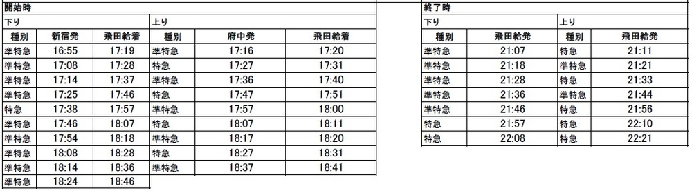上行…府中发17:16~18:37的特急・准特急/共9班