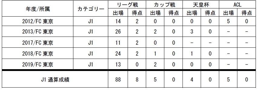□出场记录(截至2019年7月13日/仅限国内俱乐部所属时)