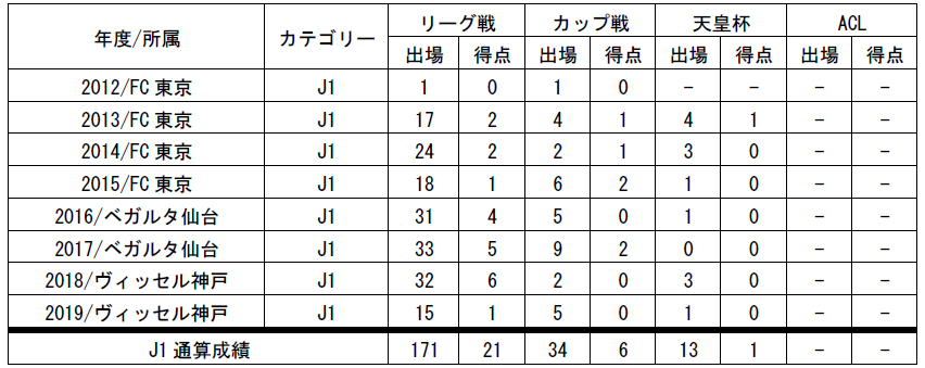 ※ 2012年 JFA・J联赛特别指定球员(FC东京)