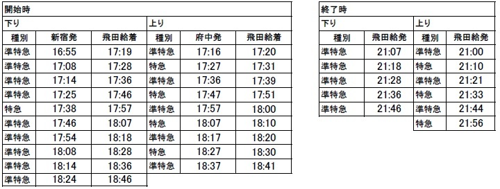 上行…府中发17:16~18:37的特急・准特急/共9班