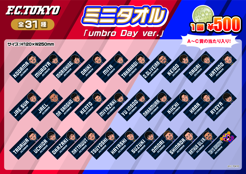 在备受欢迎的扭蛋区,推出了以当天球员穿着的“umbro Day”限定赛前训练服为主题的钥匙扣和徽章!此外,如果抽中“中奖扭蛋”,还将赠送豪华奖品!欢迎购买!