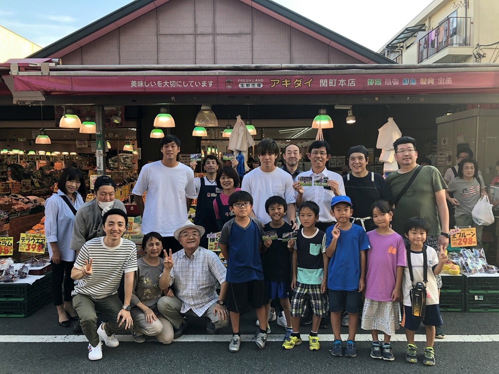 顶级球队的球员们被分成14个小组,巡回访问了东京市内50多个商店会。