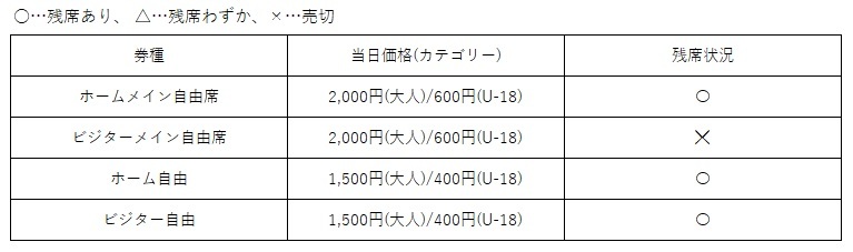 ※主场主看台自由席达到预定数量后,可能会在未提前通知的情况下停止当天票的销售,敬请谅解。