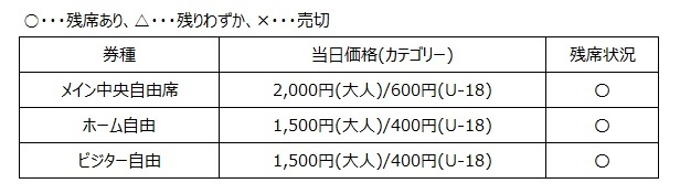 ※主看台中央自由席达到预定数量后,可能会在未提前通知的情况下停止当天票的销售,敬请谅解。