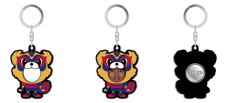 ※穿着玩偶服的钥匙扣与球员徽章套装销售。