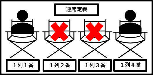 ※如果选择自动选座购买,即使是符合上述规则的连座,系统也会显示“无法为您准备连续的座位。将为您安排分散的座位。如果没有问题,请勾选确认并继续进行操作。”的提示信息,请直接继续操作。