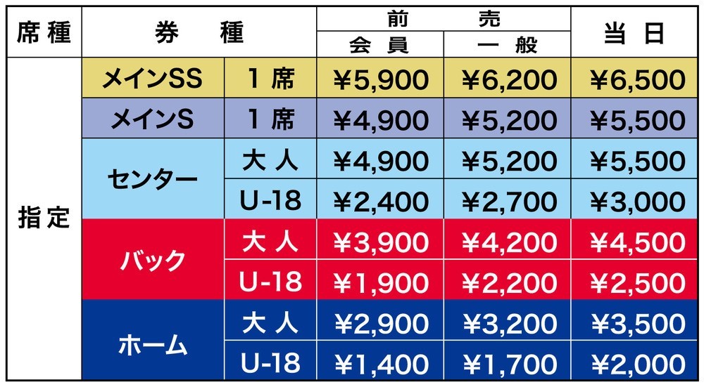 此外,随着全席位指定席化,座位分配和价格将与通常比赛不同,购买时请注意。