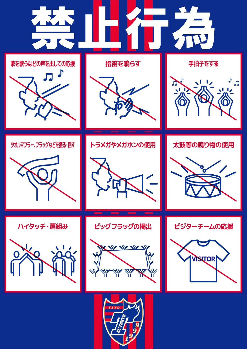 请遵守J联赛统一禁止规则(J联赛共通观赛礼仪与规则)以及FC东京足球比赛运营管理规定,并遵守“J联赛新型冠状病毒感染症应对指南”。