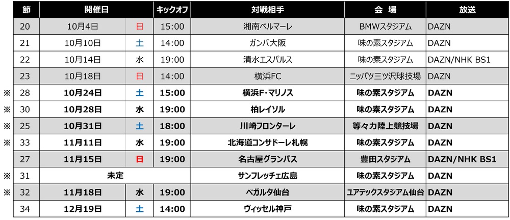 关于2020明治安田生命J1联赛10月以后的赛程,现已决定如下,特此通知。