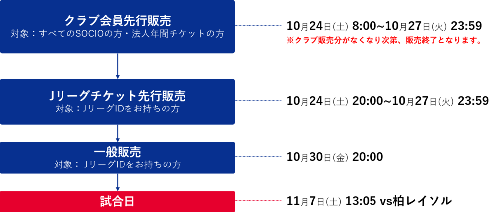 此外,在“俱乐部会员优先销售”之后,将作为J联赛处理部分进行“J联赛门票优先销售”和“J联赛门票一般销售”。