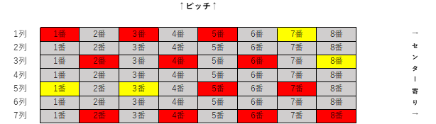 在上述情况下,如果选择自动选座并购买两张票,虽然“第5排第1号和第5排第3号是相邻空座”,但自动选座时会自动选择“靠近球场且靠近中央区域”的座位,因此会选择“第1排第7号和第3排第8号”。