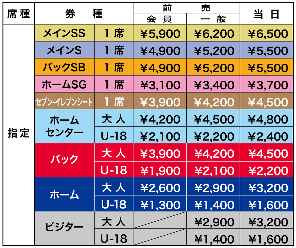 ・适用座席种类:主场席下层・上层及北侧看台下层