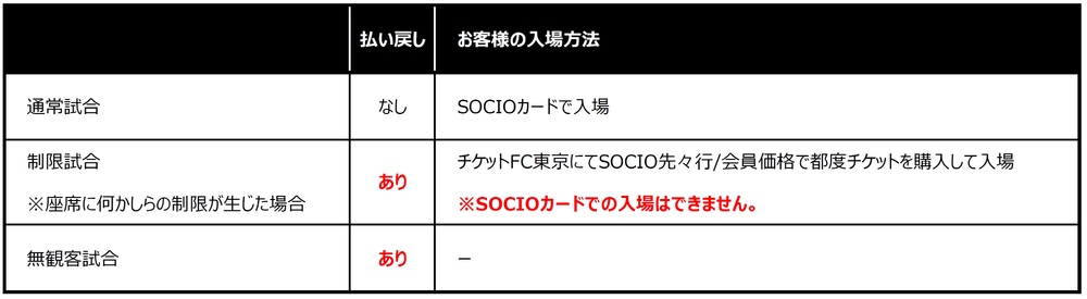 指定席:正常运营(SOCIO卡入场/在自己座位观看)不退款