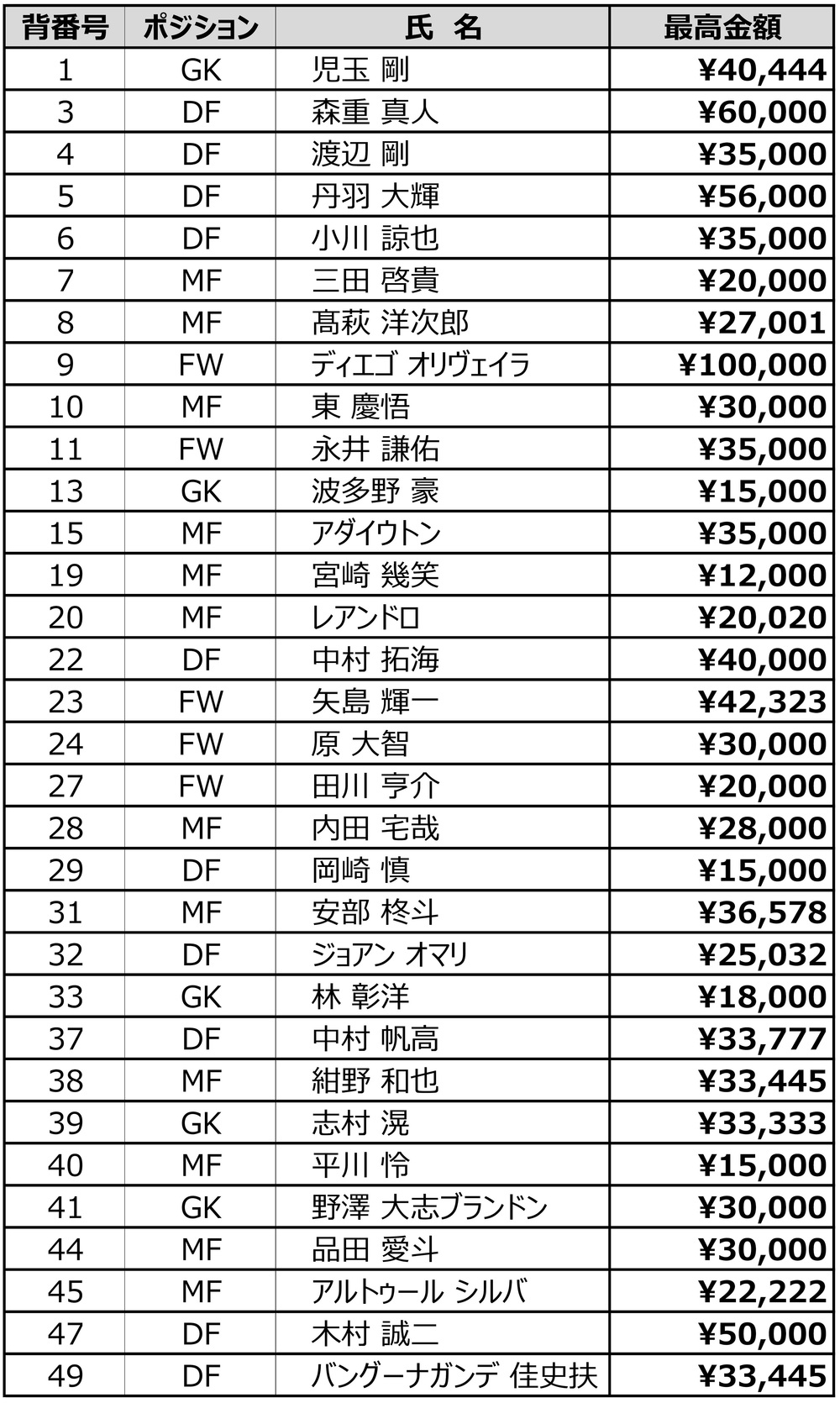 12月14日(周一)10:00起在官方手机网站进行的“Big Thank You Day~本赛季也感谢东京!~”慈善拍卖的中期进展通知。