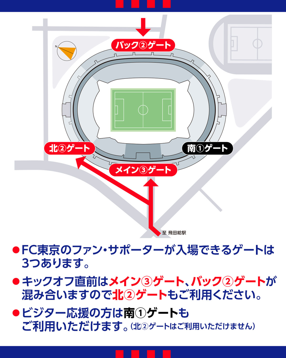・支持FC东京的球迷请使用主看台3号门、北看台2号门和后看台2号门。