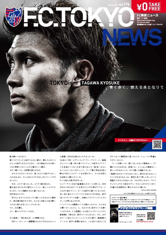 FC东京NEWS vol.176发行通知 2021/4/22 俱乐部通知 FC东京NEWS vol.176已于今日4月22日(周四)开始在京王线沿线各站设立。 本月的赠品活动将赠送给所有申请了与封面相同设计的田川亨介选手手机壁纸的用户!截止日期为2021年5月12日(周三)23:59。 请务必查看FC东京新闻! □FC东京NEWS vol.176 ※您也可以从页面底部的PDF查看。 ▽PDF查看请点击这里 FCtokyoNEWS_vol176 (4).pdf