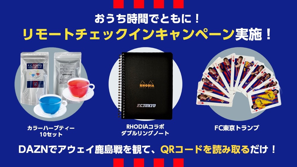 为了让您在家时间也能享受FC东京的乐趣,我们将举办“享受在家时间的商品”抽奖远程签到活动,欢迎大家踊跃参加!