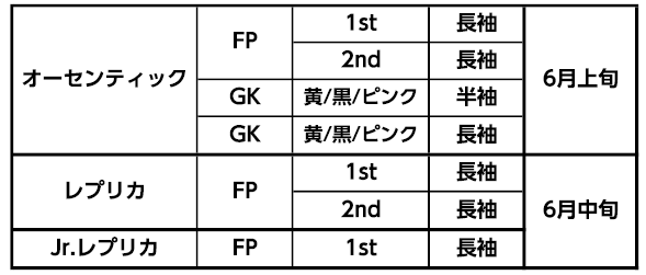 关于1月8日(周五)至2月1日(周一)期间限定接受预订销售的长袖球衣及守门员正品球衣,原计划于5月中旬送达,但由于新冠病毒感染扩散的影响,交货时间出现延迟。向所有下单的顾客的送达时间将推迟至6月上旬以后。在官方商店下单的顾客的取货时间也将按照上述送达时间进行。