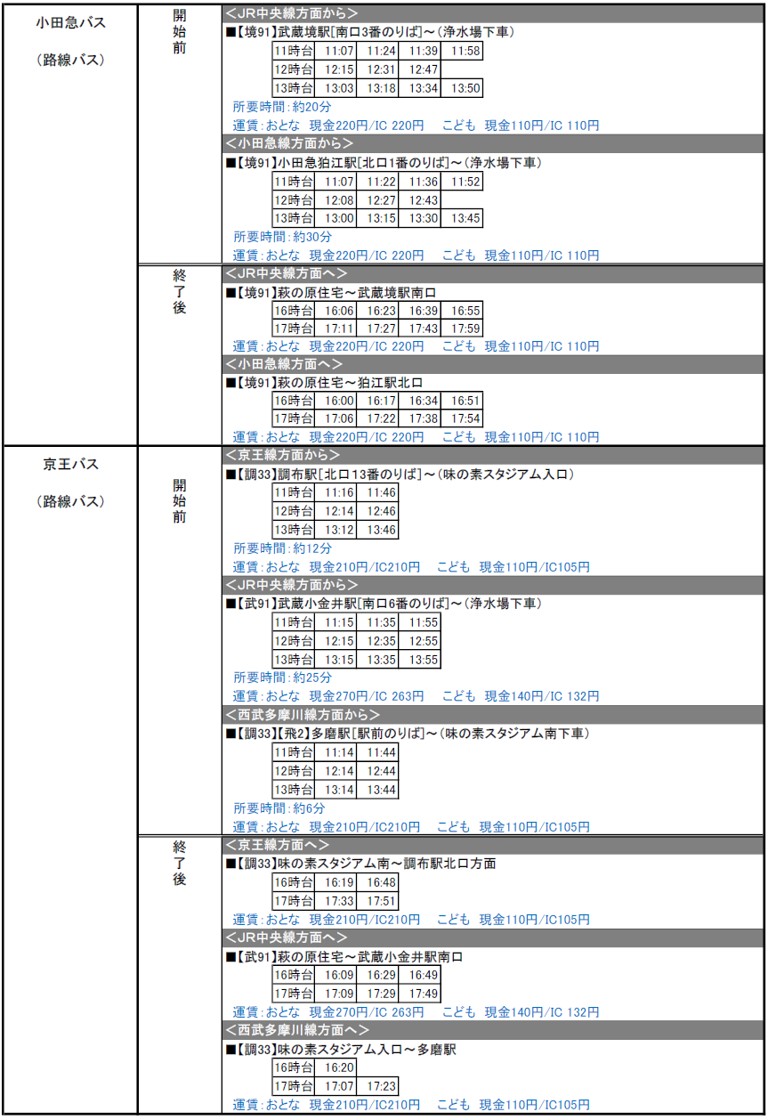 5月30日(周日) 2021明治安田生命J1联赛 第17轮 vs Sanfrecce广岛(14:00开球/味之素体育馆)的班车和路线巴士运营信息。