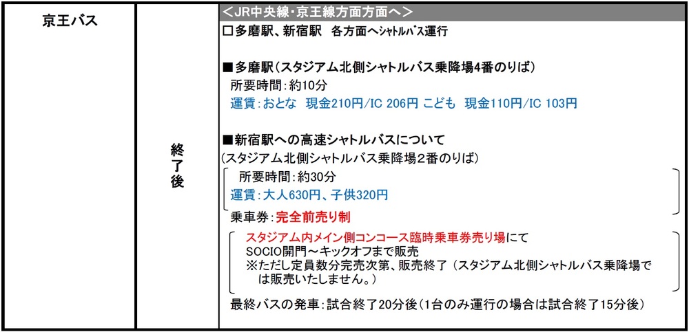 12月4日(周六) 2021明治安田生命J1联赛 第38轮 vs Avispa福冈(14:00开球/味之素体育馆)将提供的临时交通接驳(铁路)、穿梭巴士及线路巴士的相关信息。