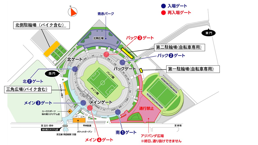 【来自味之素体育馆的通知】2/23(周三节假日)关于磐田战的自行车及摩托车停车场 2022/2/9 比赛信息 关于2月23日(周三祝)Júbilo磐田比赛的自行车及摩托车停车场的通知。 □目标比赛2月23日(周三祝) vs Júbilo磐田(15:00开球/味之素体育馆) □可使用区域(见下文)・北侧自行车停车场(含摩托车)・第一停车场(自行车专用)・第二停车场(仅限自行车)・三角广场(包括摩托车)