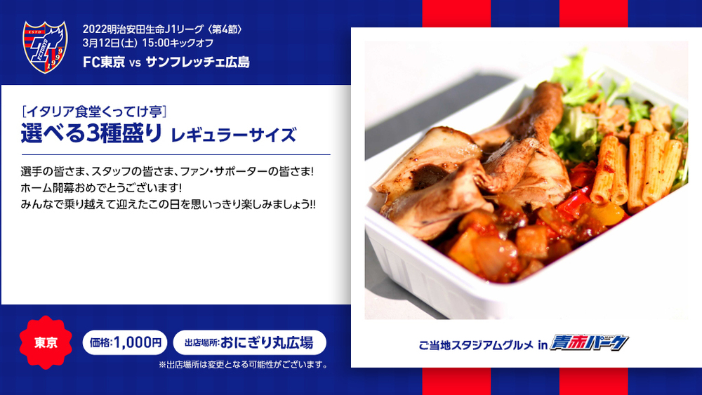 【3/8追加】3/12(周六)广岛战 AO-AKA PARK「当地体育场美食」举办通知