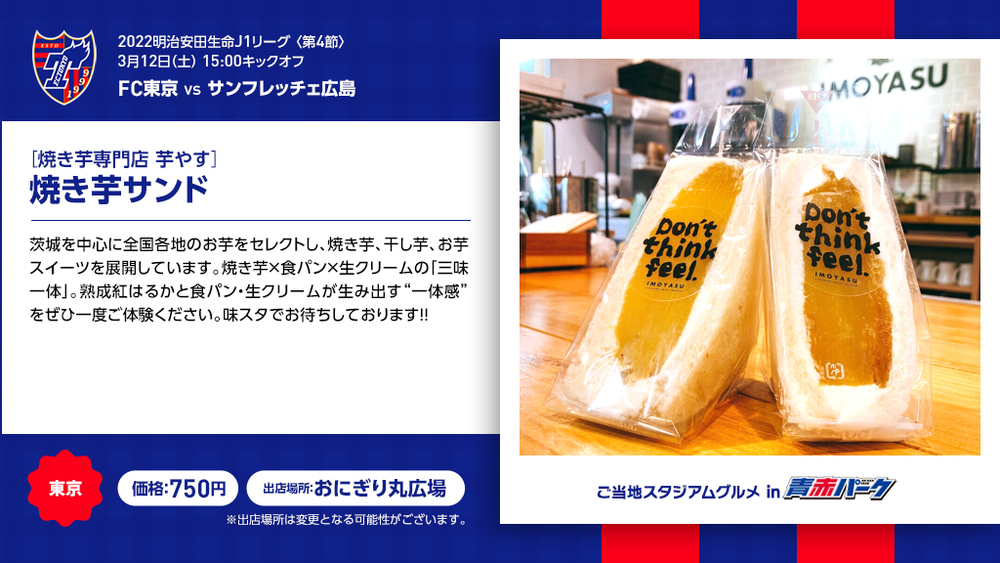 全国的体育场美食将在青赤公园亮相。在目前难以前往客场的时期,请务必品尝那些难得一见的当地体育场美食。