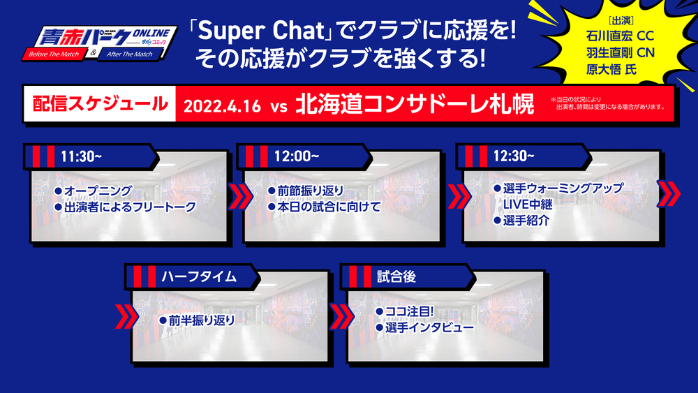 4/16北海道Consadole札幌战『AO-AKA PARK在线赛前/赛后活动 由mechacomic呈现』举办通知