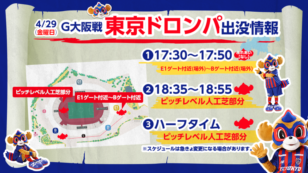 4/29(周五祝) G大阪战『TOKYO DOROMPA』出现信息!