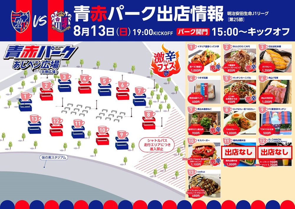 【8/13追加】8/13(周六) 对阵C大阪 AO-AKA PARK(激辣美食)的举办情况