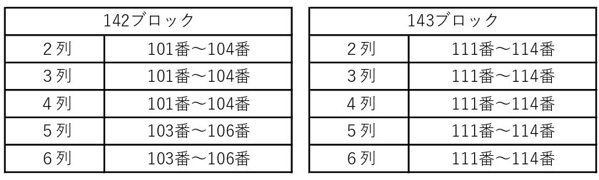 主看台SSS指定席、主看台SS指定席北侧(第1层)、主看台S指定席北侧(第1层)