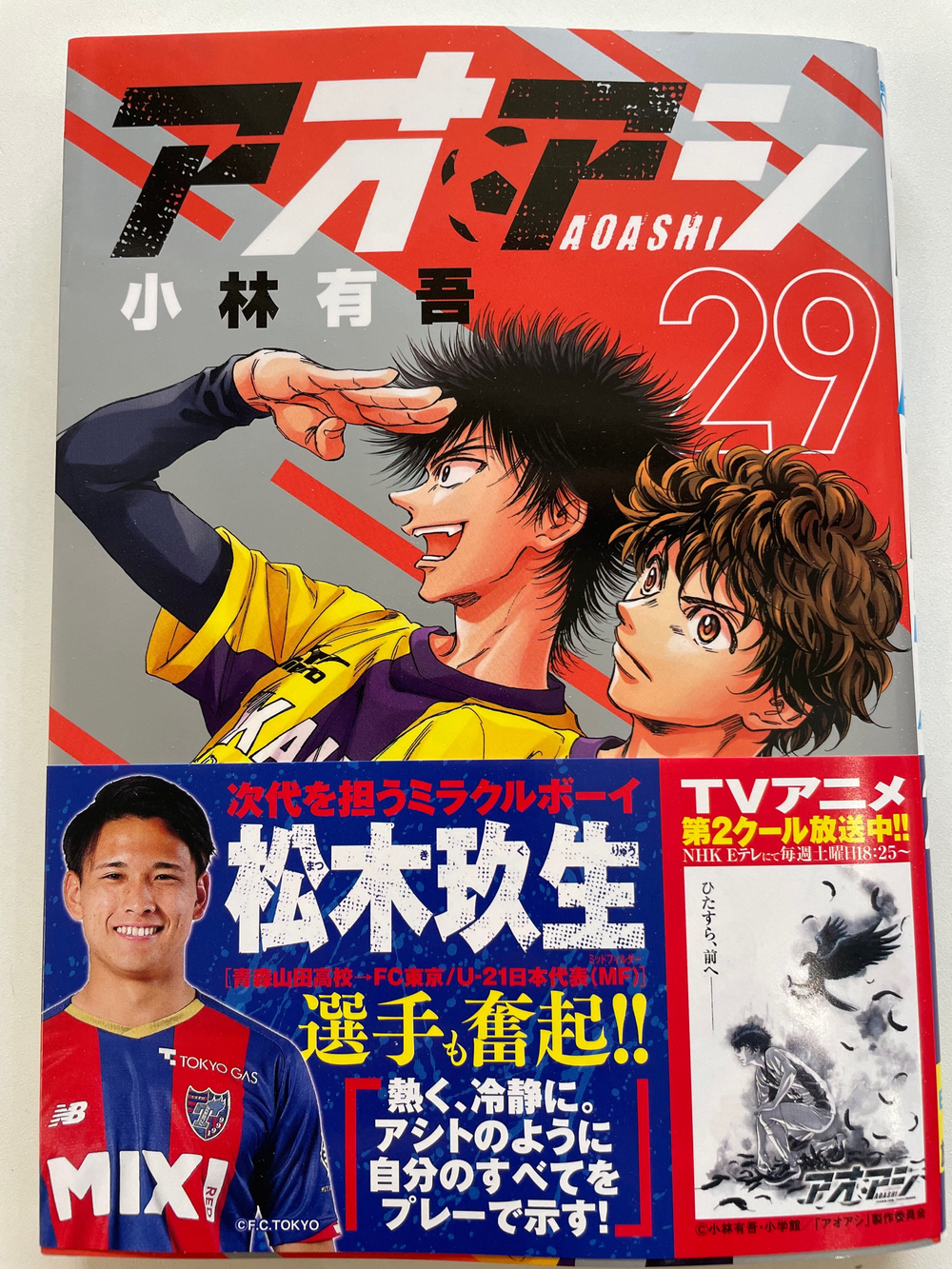 足球漫画《青足》第29卷 单行本封带上出现了松木玖生选手! 2022/8/30 媒体 今天8月30日(周二)发售的足球漫画《青足》第29卷单行本的腰封上,松木玖生选手发表了评论。 请务必购买! □刊载杂志《青足》第29卷 单行本腰封 □登场者松木玖生 选手 □发售日正在销售中 □价格定价715日元(含税) □出版社株式会社小学馆