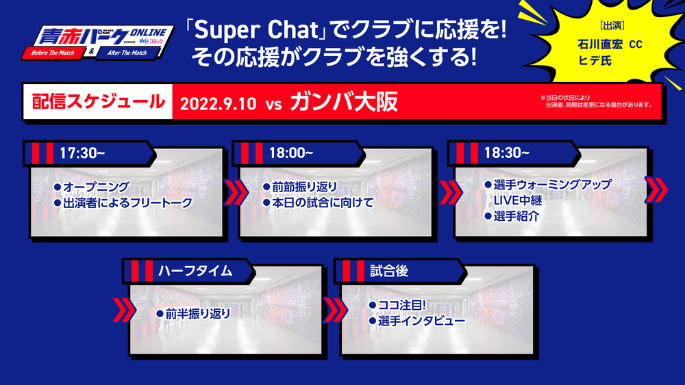 9/10 对阵G大阪战『AO-AKA PARK在线赛前/赛后活动 presented by mechacomic』举办通知