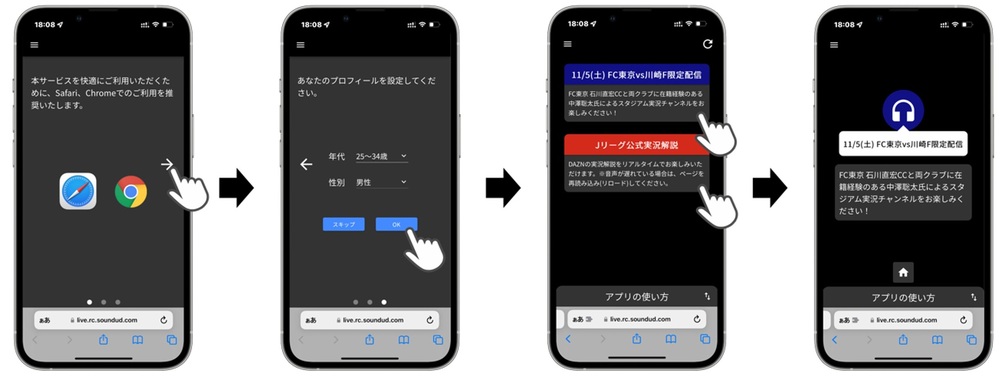 ・收听J联赛官方实况解说需要进行位置信息认证。请事先在操作系统或浏览器应用的设置中开启或允许位置信息服务。