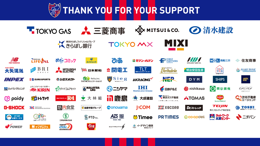 现已确定2023赛季俱乐部赞助商,特此通知。我们将与由83家公司组成的赞助商们的心意一起,奋战2023赛季。