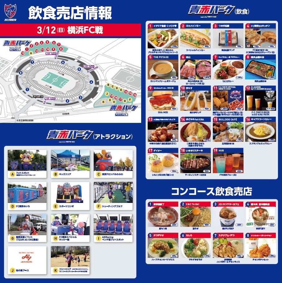 • 【3/6更新】3/12(周日) 横滨FC战 饮食信息(AO-AKA PARK&大厅售货亭)