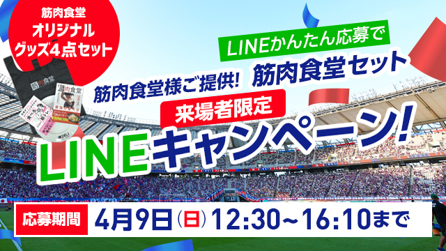 4月9日(周日) FC东京vs湘南Bellmare比赛现场,所有已将LINE官方账号添加为好友的观众均可参加。
