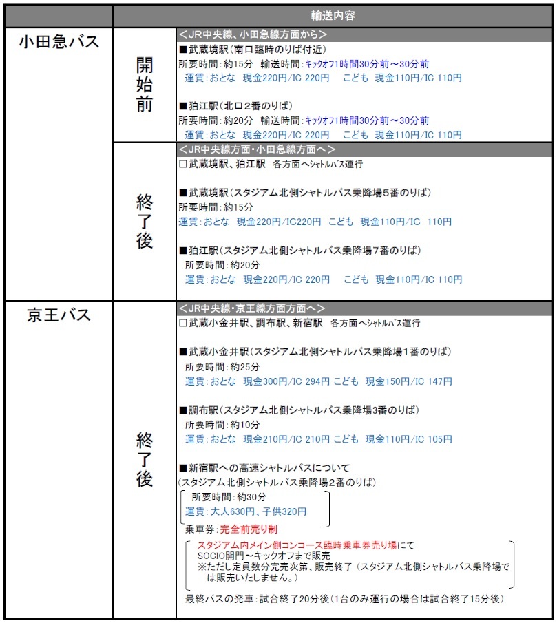 4月9日(周日) 2023明治安田生命J1联赛 第7轮 vs 湘南Bellmare(15:00开球/味之素体育馆)期间运营的临时交通接驳(铁路)、穿梭巴士・线路巴士相关信息。