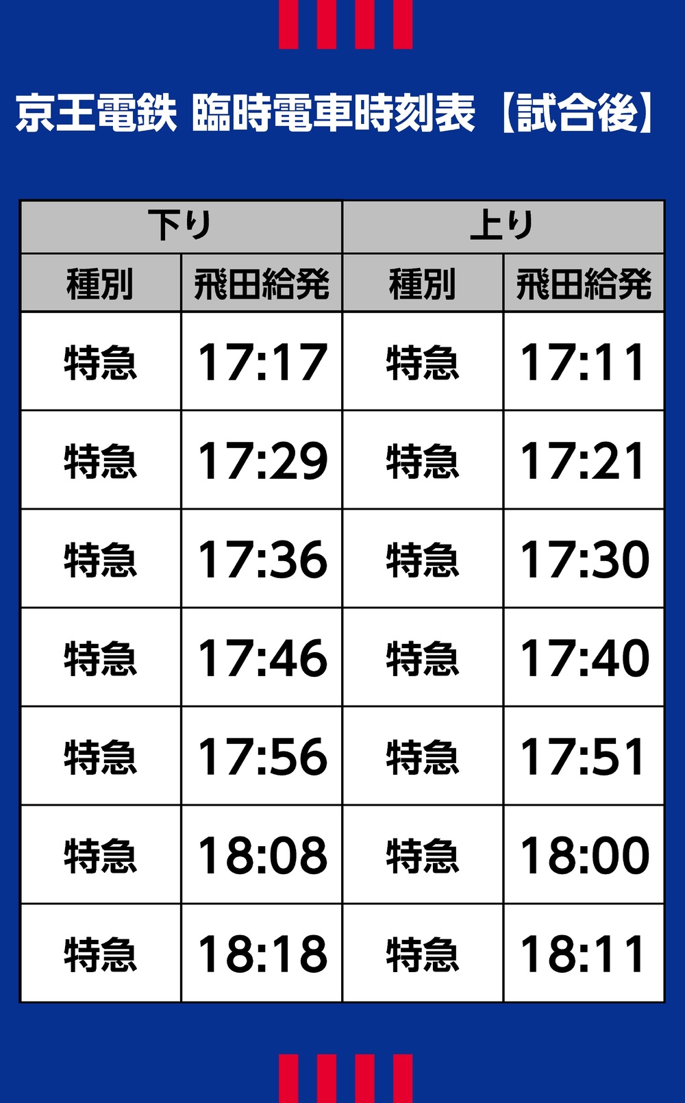 □急行系列列车的临时停靠(比赛结束后)