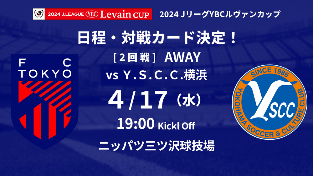 根据今日举行的2024 J联赛YBC Levain杯第一轮比赛结果,第二轮的对手已确定为Y.S.C.C.横滨。
