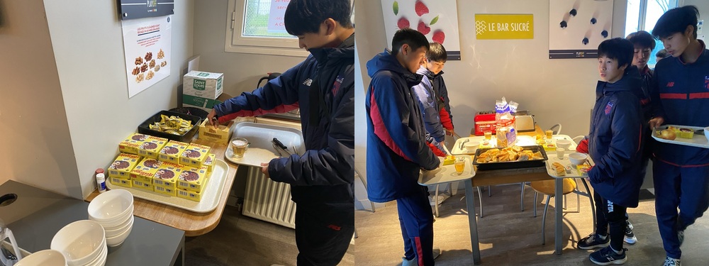 早餐采用法式风格,提供丰富的简单菜单,如麦片和面包,选手们吃着让食堂厨师也惊讶的量的早餐,为一天的活动补充能量!