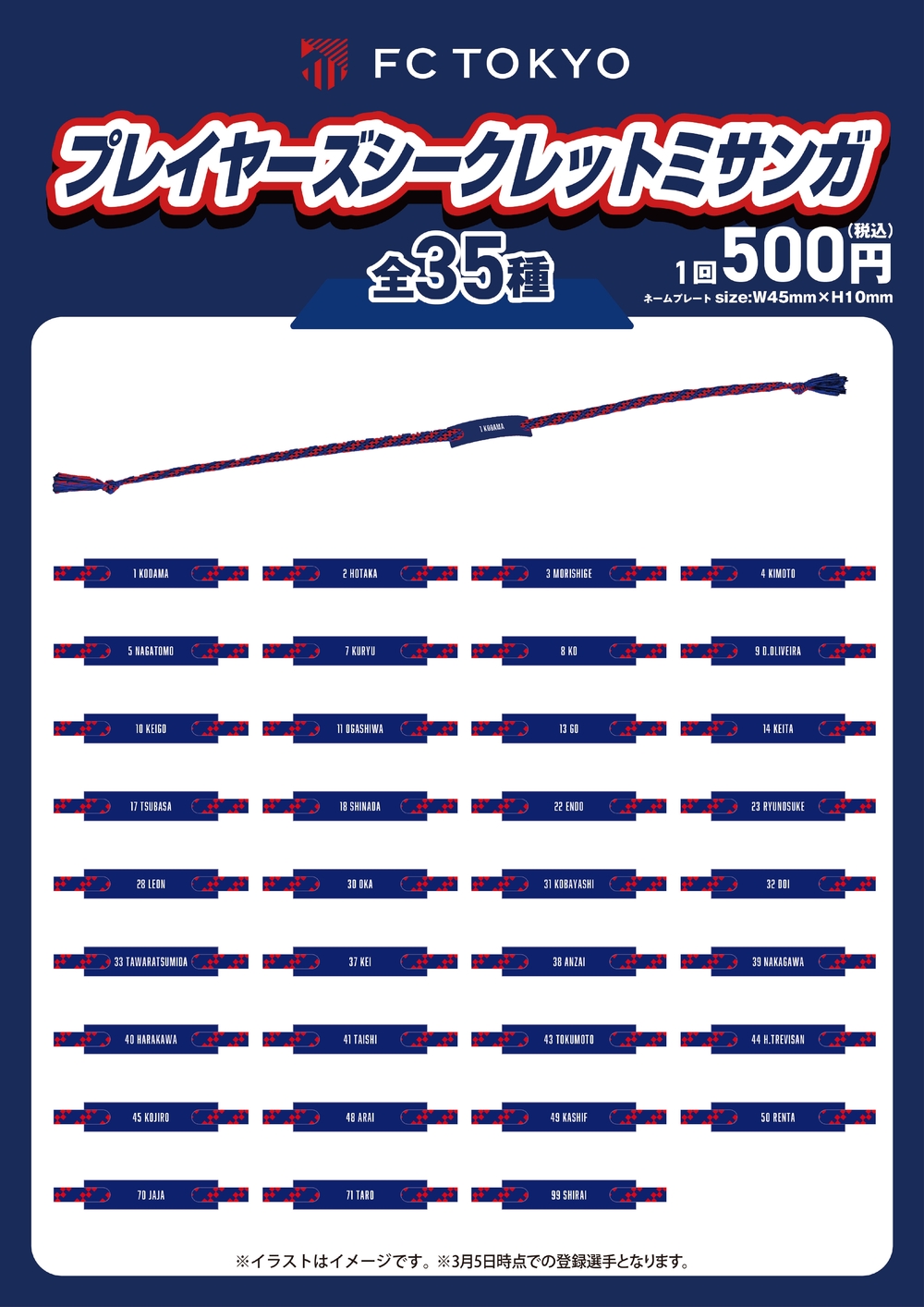 主场比赛时,将销售印有日期和对手的比赛日商品。每次的球员也不同!是观赛纪念的完美商品。