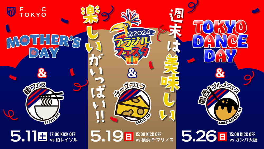 请务必在5月的周末邀请家人和朋友一起来观看FC东京的主场比赛!