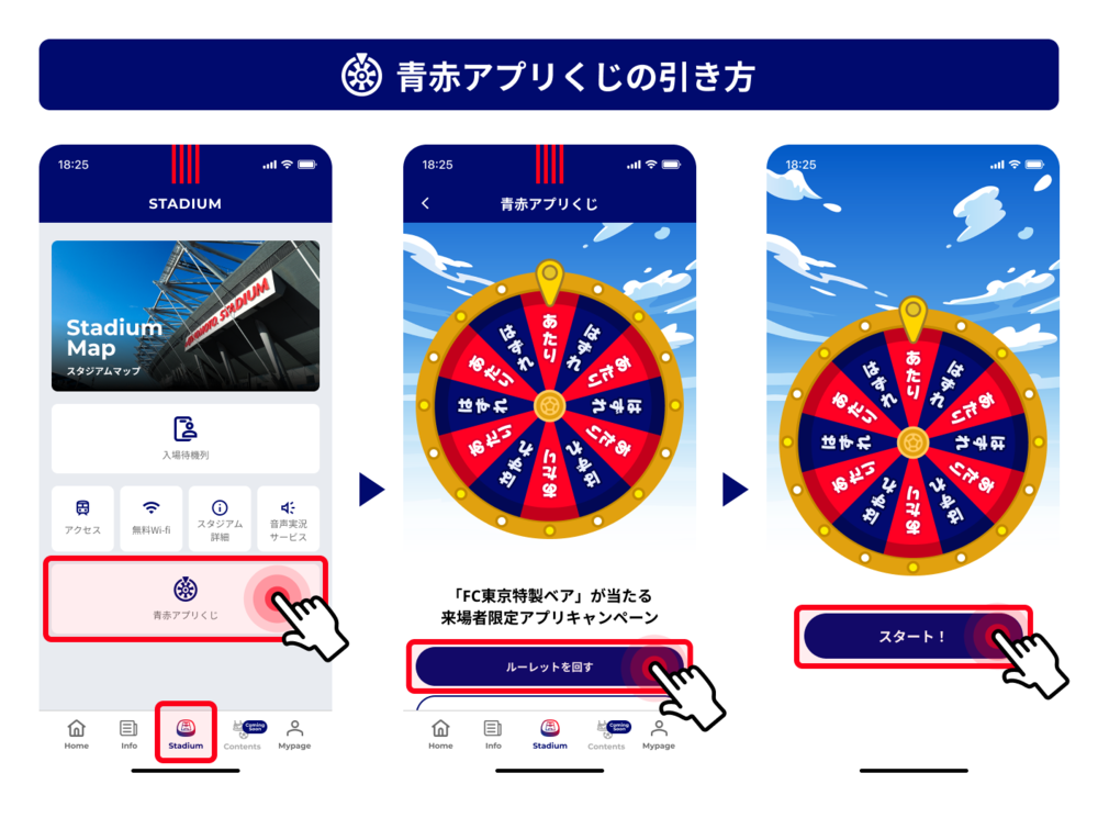在FC东京应用内的Stadium标签中有“青赤应用抽奖”横幅,请点击并参与。