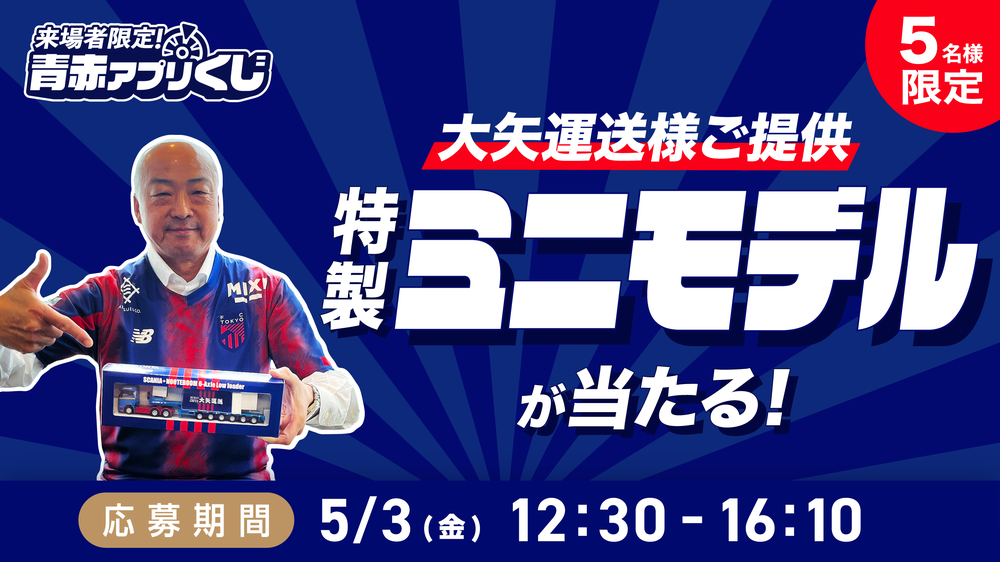 5月3日(周五祝)FC东京vs京都SANGA体育场F.C.,将举办仅限来场者使用FC官方应用的“青赤应用抽奖”活动。